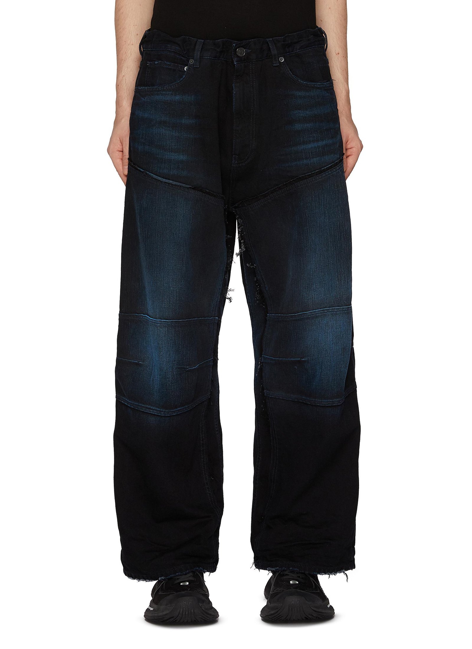 Enter ‘s fashion revolution with the avant-garde wide-leg jeans, blending loungewear comfort with tailored sharpness, featuring a drawstring waistband and panel construction. Pair these statement jeans with a tracksuit jacket for a sporty look.