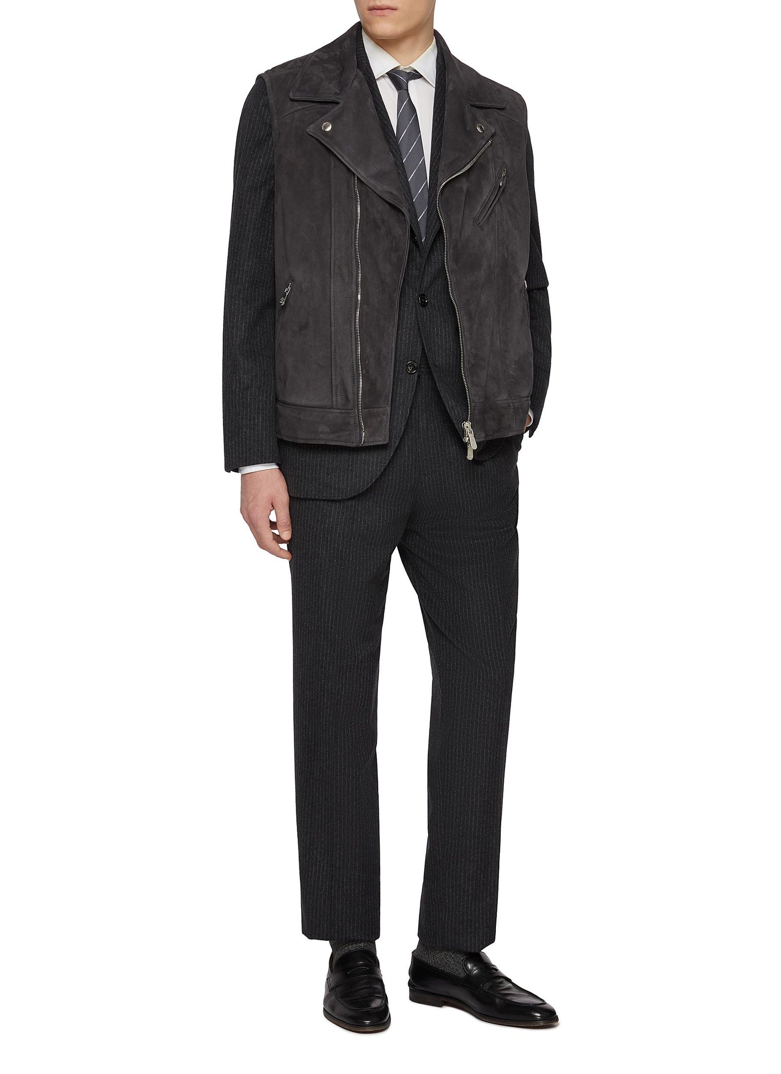 Indulge in impeccable Italian craftsmanship from with this suit that adds an authentic touch of top-notch quality to your wardrobe curation. Crafted from a premium blend of wool and cashmere, this dark grey pinstriped suit is a perfect pick for both office or weekends.