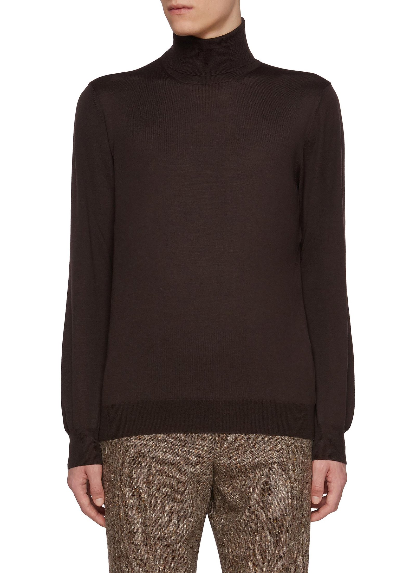 Crafted with meticulous attention to detail, the fine plain knit of this turtleneck wool sweater showcases super craftsmanship and unparalleled style. Perfect for wearing solo or layering under a blazer, this piece is a wardrobe essential for the modern man.
