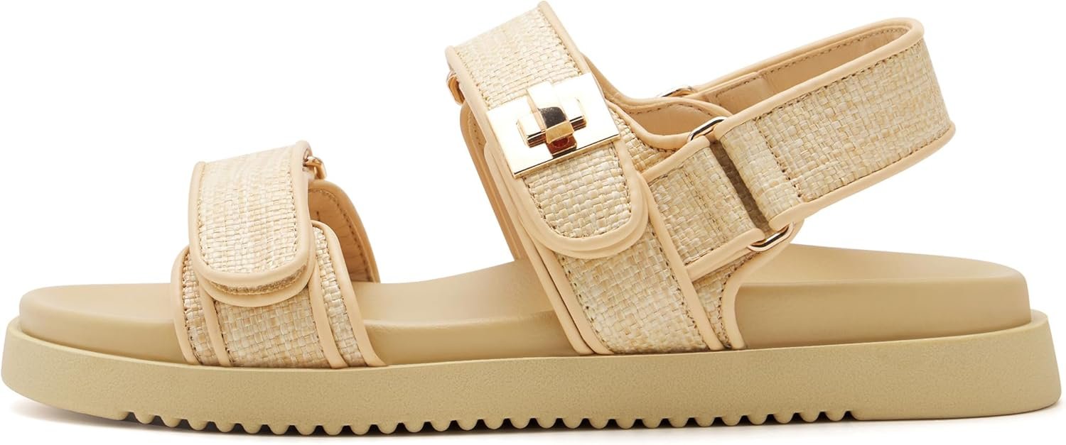 • Soft Material: The Women’s sandals are made of raffia upper and PU sole materials to provide a stable and comfortable feel for your feet, with gold metal decor on the upper makes these flatform sandals more stylish.